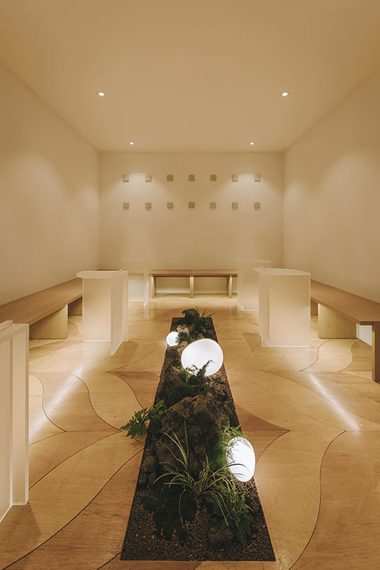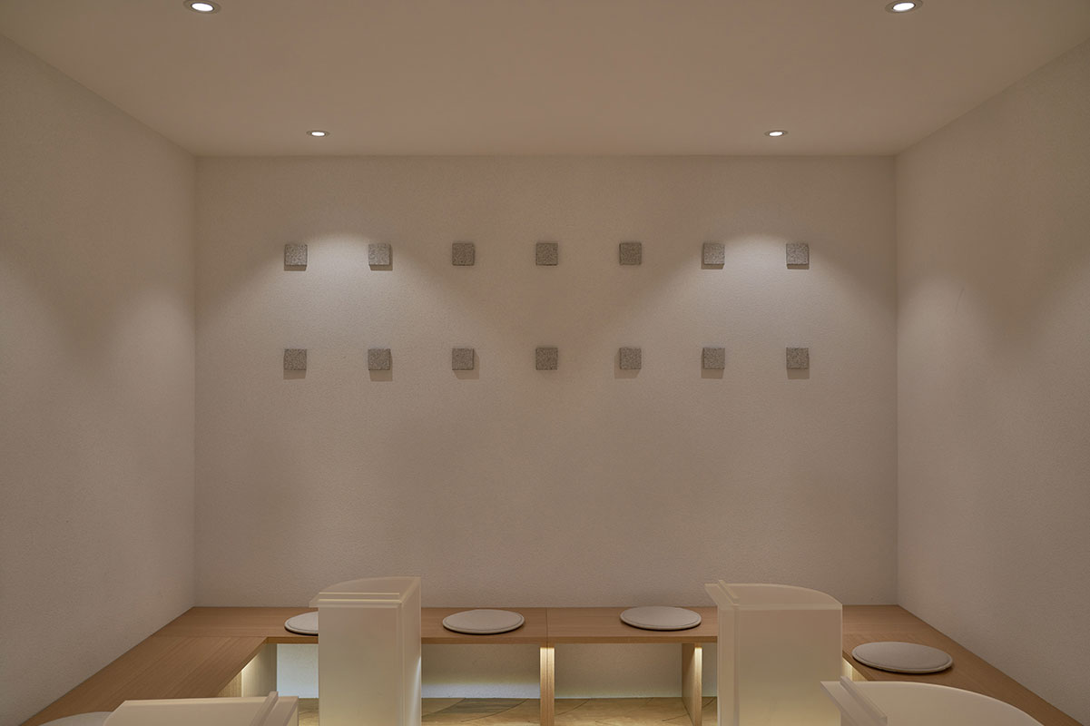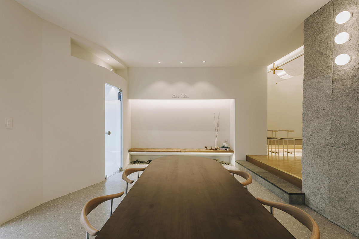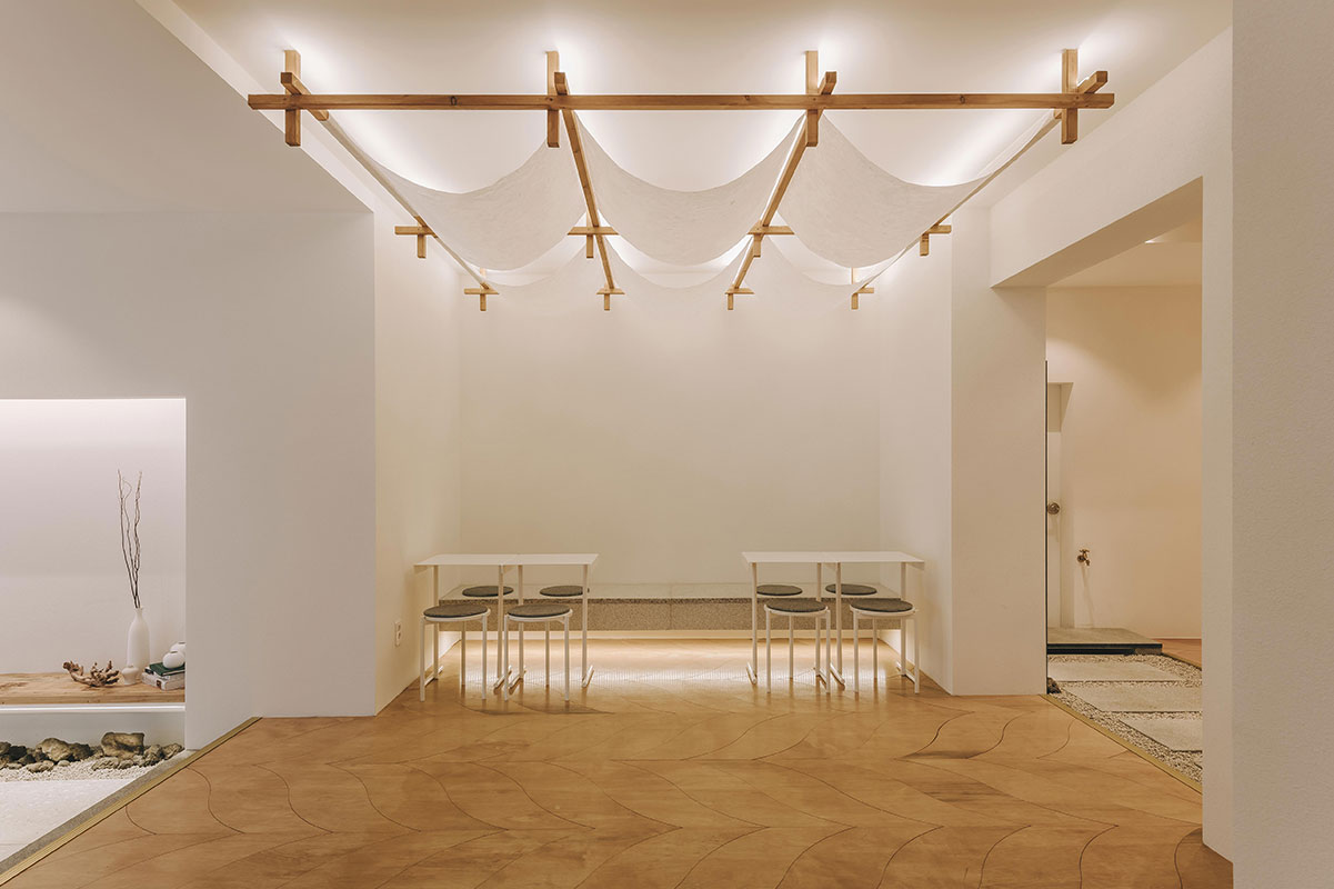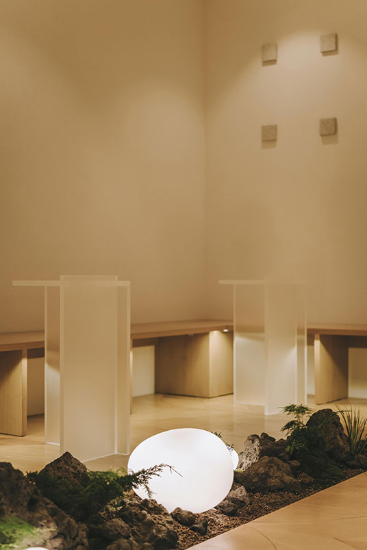우드와 포천석이 주된 마감재로 컬러의 단순화를 시켜 진행된 공간이었다. 바닥 마감재는 기성 마루 제품을 사용하지않고 CNC로 직접 제작하여 시공하였다.