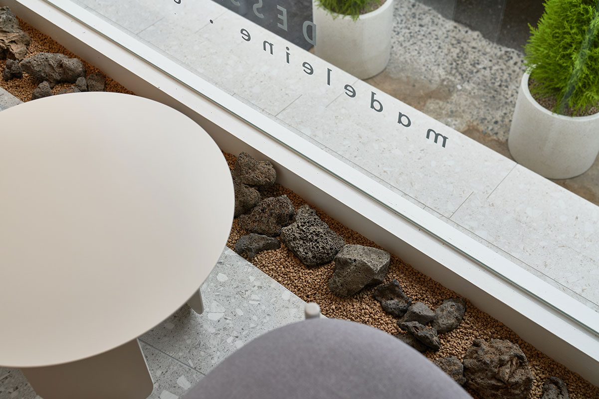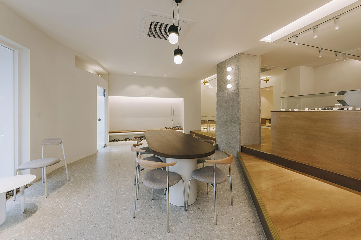 기존에 식당이였던 곳으로, 방으로 구획이 나눠져있는 공간을 개방감을 주기 위해 일부 벽을 철거하고 그에 맞게 보강작업까지 진행되면서 기초 작업이 오래 걸렸던 공간이다. 디저트가 주가 된 카페이므로 베이킹 공간을 확실하게 마련하고 나서야 커피 작업공간, 고객 공간이 마련되었다.