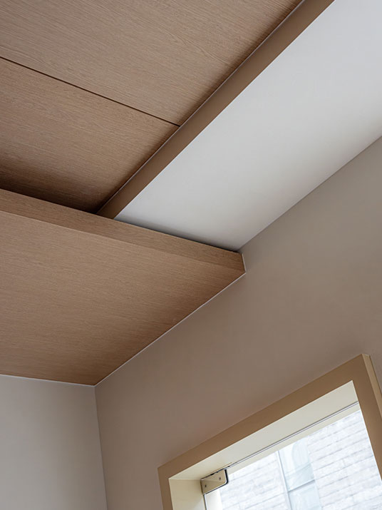 벽지 또한 매트한 질감의 소재를 사용함으로써 반사를 줄이고, 천연 목재와의 조화도 높였습니다.