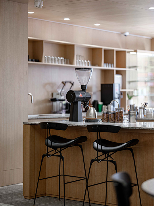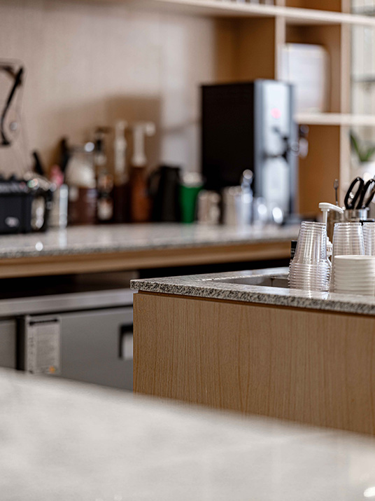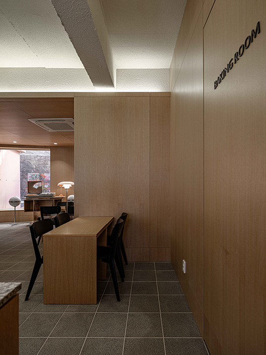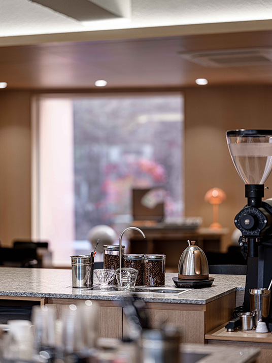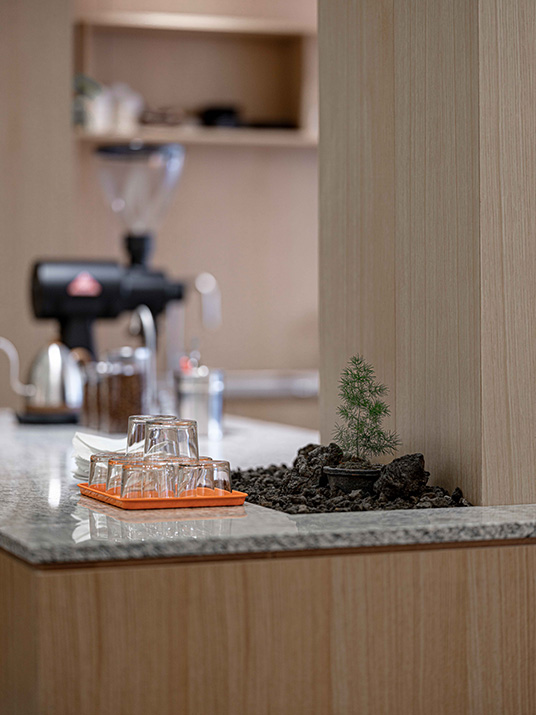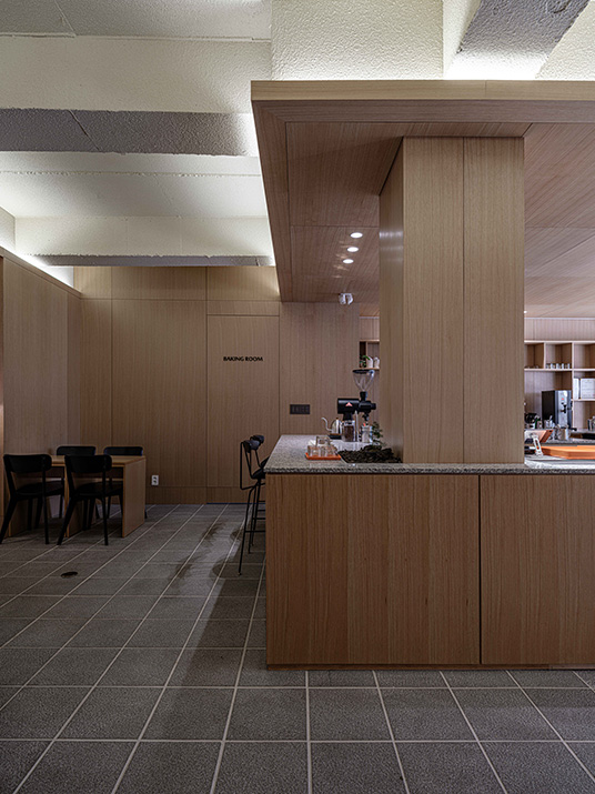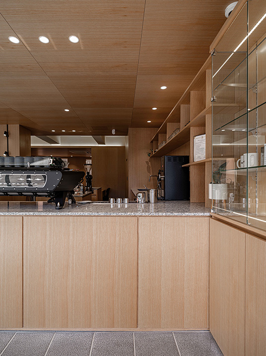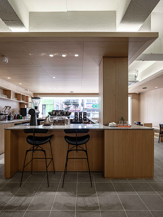 커피를 전문으로 하는 곳이니만큼 카운터 공간을 넓게 잡아 여러 작업이 불편함없이 동시에 이루어질 수 있도록 하였다.