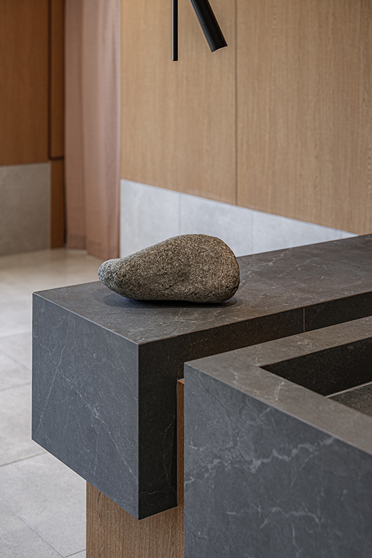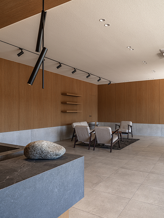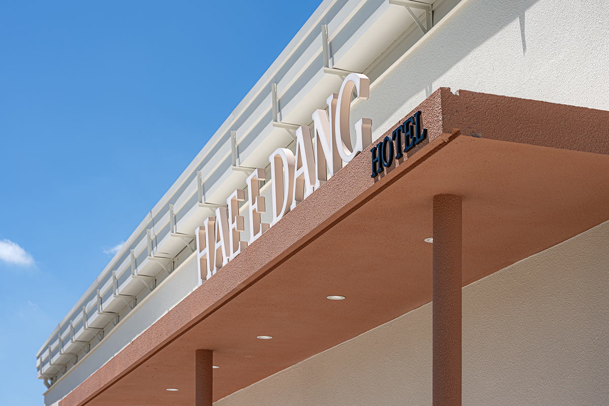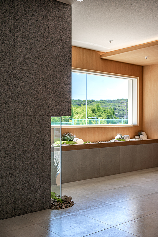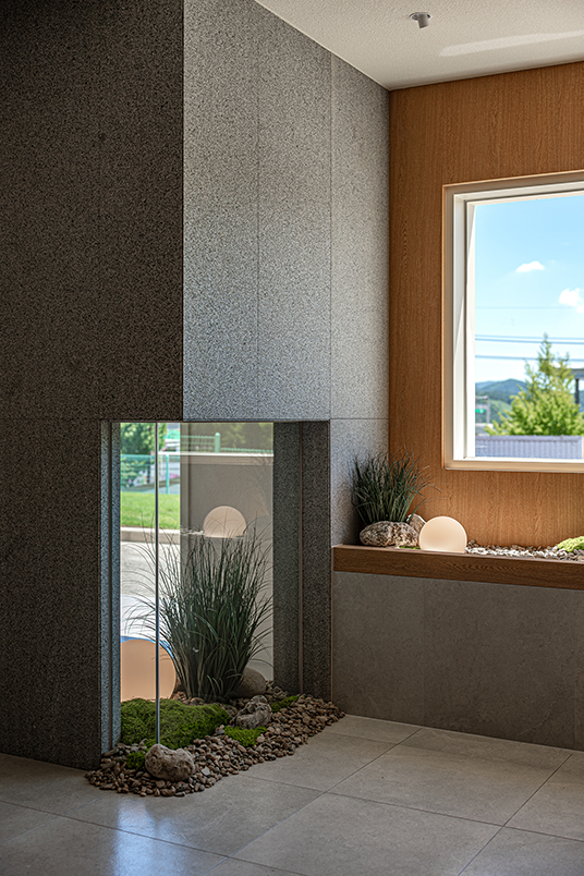 호텔동은 호텔을 이용하는 고객들이 처음 마주하는 공간으로 깔끔하고 고급스러운 분위기를 내고자하였다.