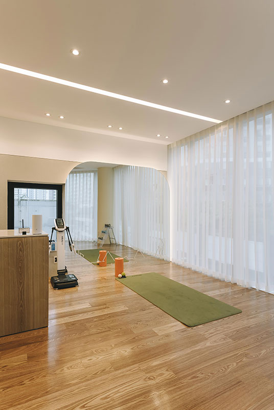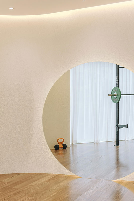소규모 형태의 운동을 하는 곳으로 공간에서 모든 과정을 해결하고 나갈 수 있도록 기본적인 탈의실, 샤워시설까지 적용시켰다.